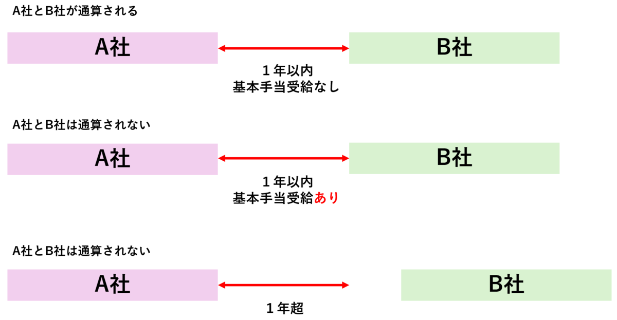 例えば、A社を離職し、基本手当の受給資格を得た者が、その受給期間内にB社に就職しB社で受給資格を得た後離職した場合、A社での基本手当はどうなるのか?についてみていきます。