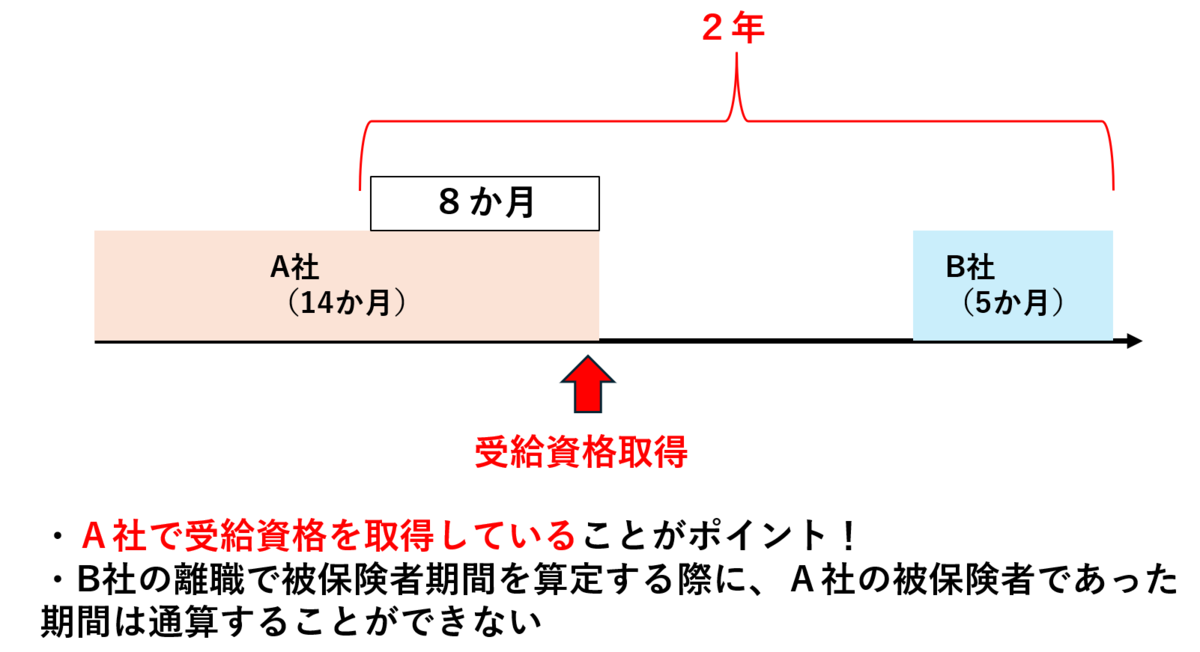 そのため、離職の日以前1年間に被保険者期間が通算して6か月以上あれば、他の要件を満たす限り、基本手当の受給資格を取得します。